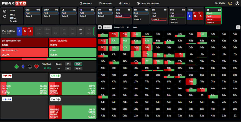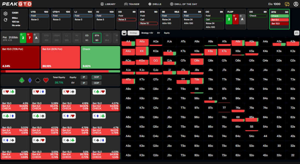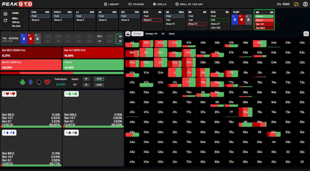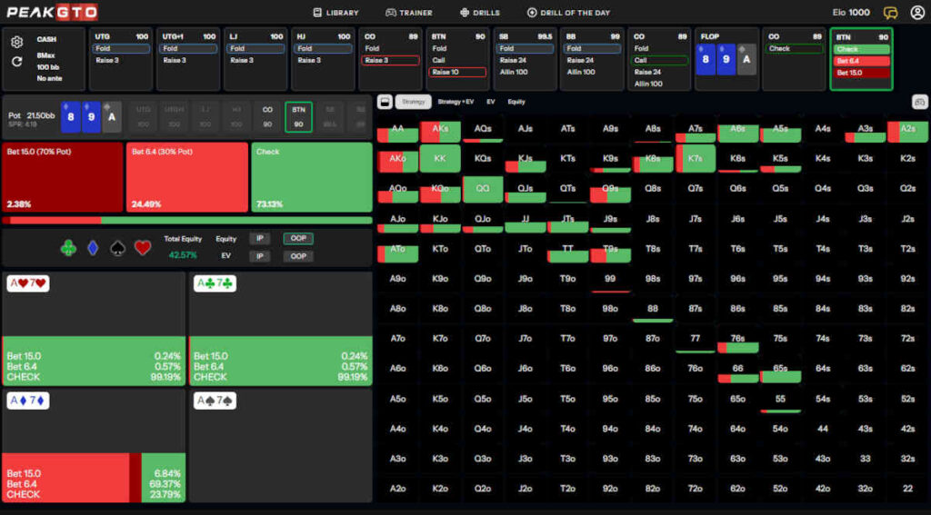 We already talked about c-betting on low-card boards and high-card flops in 3-bet pots, so today we will use the PeakGTO to analyze strategy on ace-high boards.
