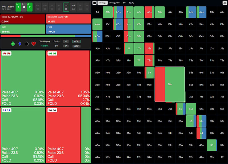 Instead, make sure always to check raise your strongest hands from OOP on the flop, as this balances your range, allows you to put all the money into the pot by the river, and charges your opponents if they want to keep drawing.