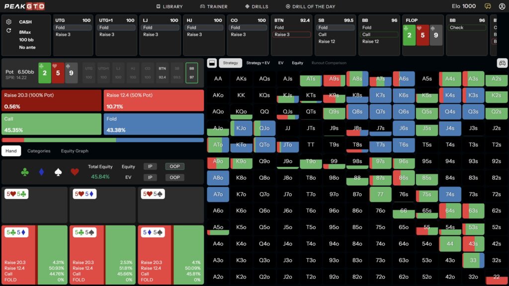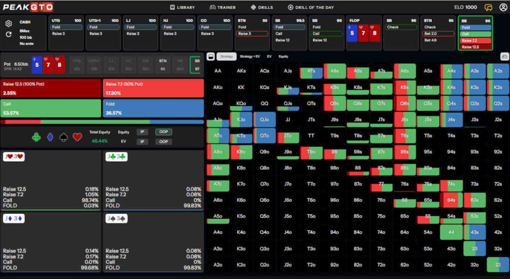 We will use the PeakGTO solver to analyze low-card flop textures in situations where you call from the BB vs the BTN open and see a dry flop with all low cards.