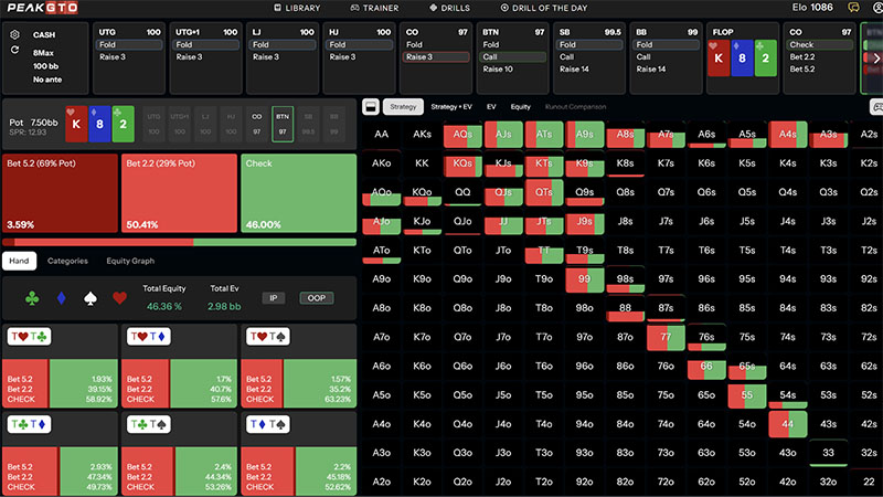 - If the CO checks, you should bet yourself around 54% of the time and use a small bet sizing.
