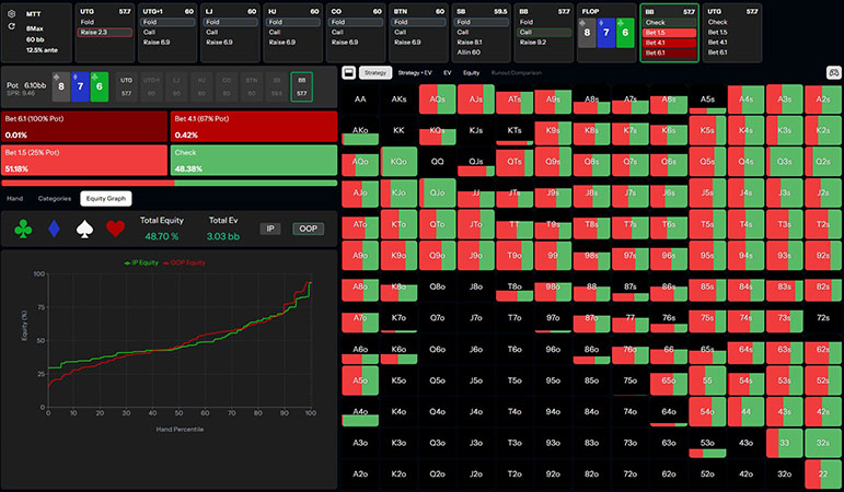 Example 1: UTG vs BB – Flop 8♠ 7♦ 6♣