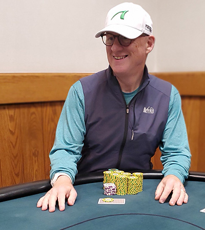 The final couple of rungs on the ladder came when I flopped a set of fives on a T♣️-5♠️-3♣️ flop. Hint: sets make good ladders if you’re in a hole. I bet small, and, much to my surprise, got two calls on the flop. Another ten came on the turn, solving any concerns about the flush draw. I bet more, the first opponent raised, the second opponent shoved, and, well… It took the dealer three scoops to get the entire pot to me.