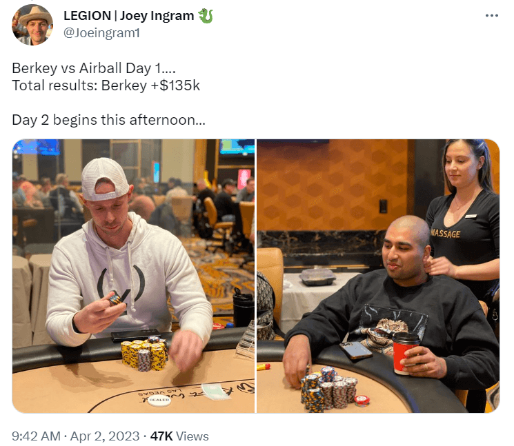 While we have detailed all of the drama that has led to this match-up, readers are surely here to read about the action that has taken place thus far. As the poker world anxiously awaits the next chapter in the Berkey vs Airball grudge match, get caught up on what has happened so far below!