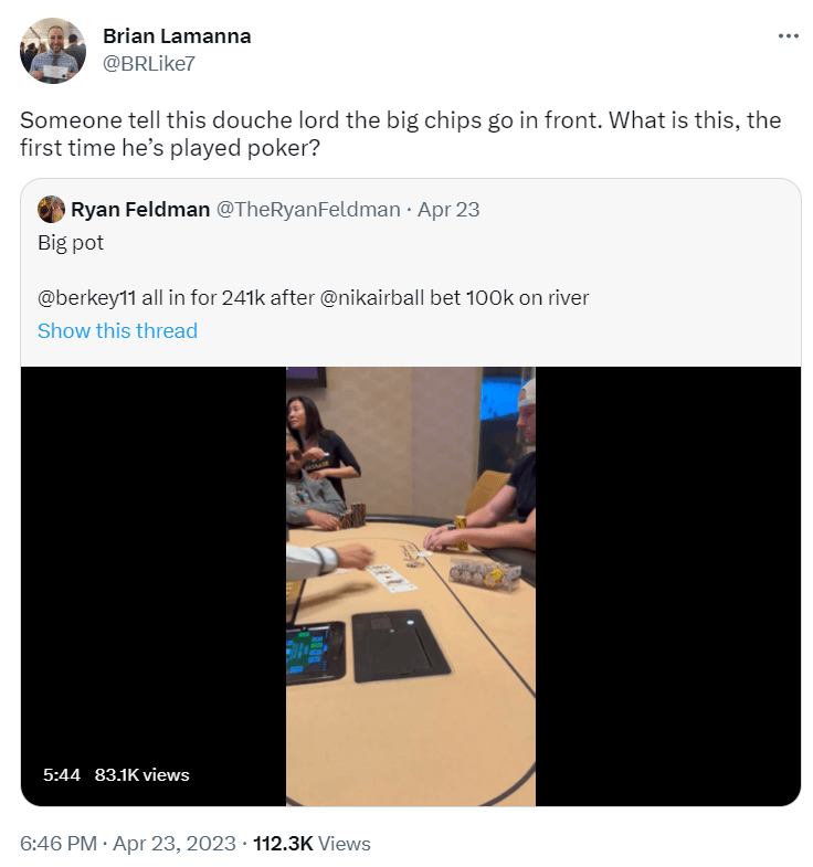 Whether you were a fan of the grudge match or not, Nik Airball and Matt Berkey garnered the attention of the entire poker community over the course of the past month. When these two weren’t squaring off in the Resorts World Poker Room, they could be found debating in Twitter Spaces, appearing in episodes of High Stakes Poker, and almost coming to blows in Bobby’s Room. Although we sadly could not view this match on a live stream, the continued updates from the Twitter accounts of Eshaan Bhalla, Landon Tice, and Ryan Feldman kept us informed as well as entertained.