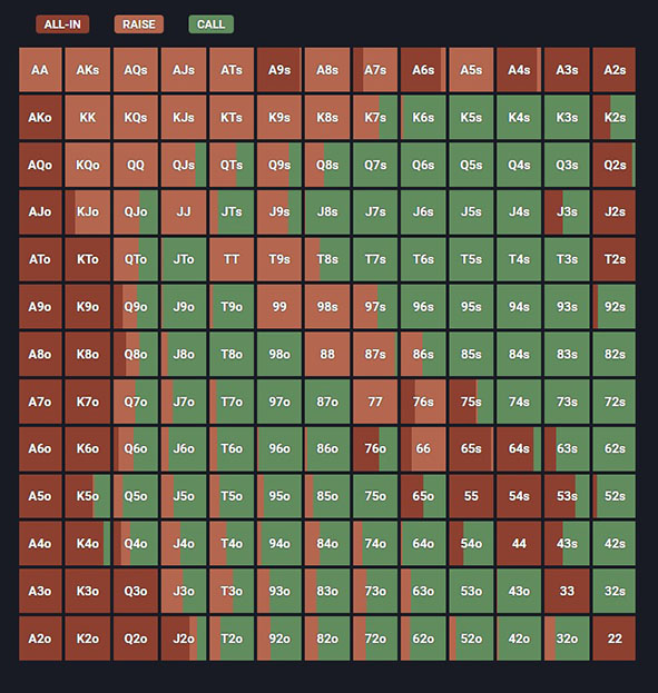 Studying push/fold charts is an essential part of training for Spin and Goes, as the vast majority of your plays after the first couple of levels will be all-ins.