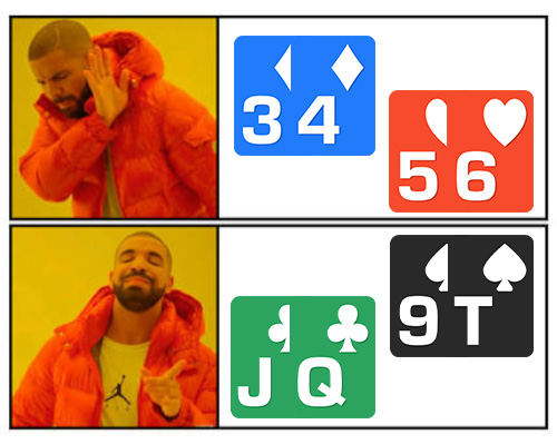 Just like there is a difference between suited connectors and suited gappers, there is also a difference between high and low suited connectors.