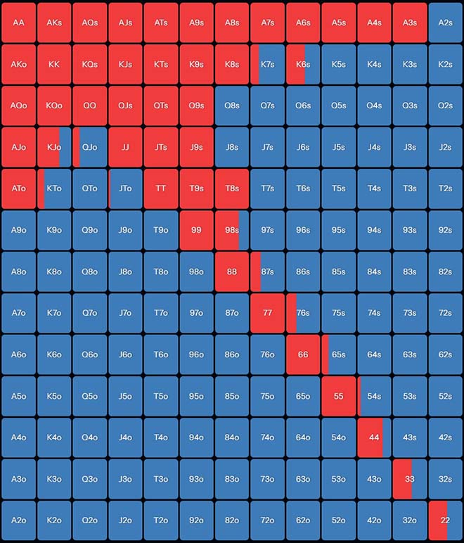 For example, opening a hand like 98s with a 100bb stack from an early position is acceptable in terms of theory, but opening 97s in the same spot is too loose.