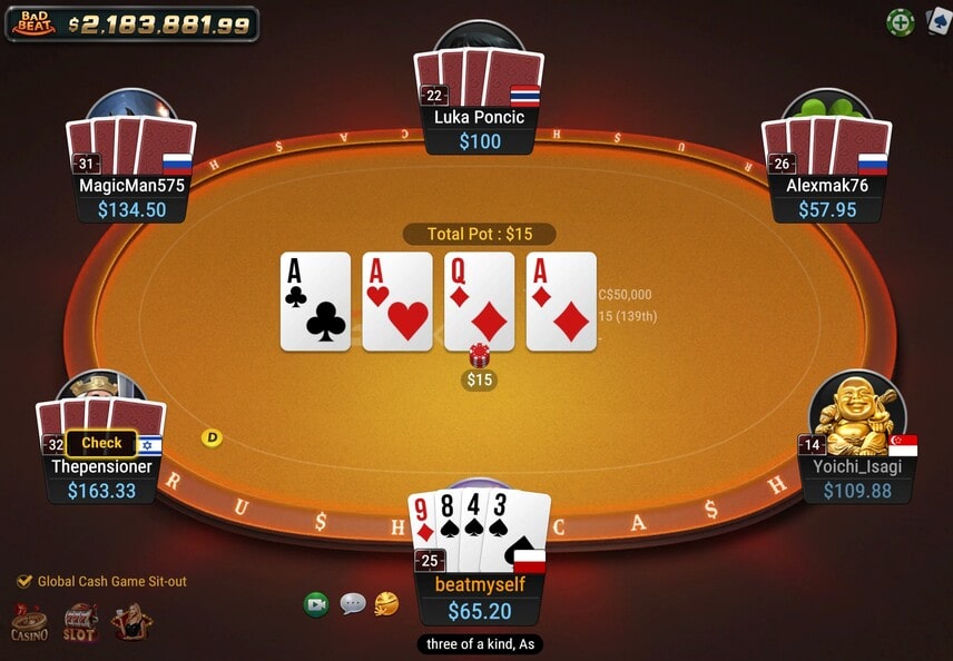 - All-In or Fold (AOF) Cash: This is a special, casual-player-oriented cash game format where in each hand, every player only has two options – go all-in or fold. The buy-ins are fixed (e.g., for Hold’em it’s 8 big blinds, for Omaha 5 big blinds). You can find relatively big games there, with blinds going from $0.05/$0.10 all the way up to $100/$200.