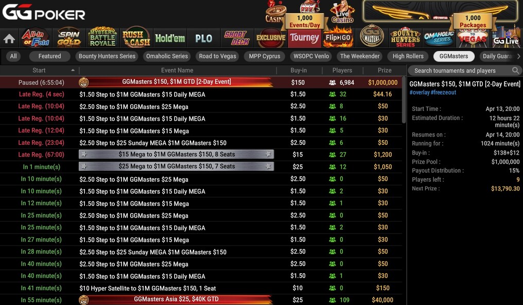 - GGMasters & Flagship Events: GGPoker’s signature freezeout series is the GGMasters, a no-rebuy, no-add-on tournament format to appeal to purists..